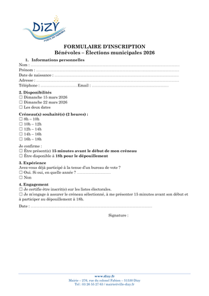 La mairie de Dizy recherche des bénévoles pour participer à la tenue des bureaux de vote à l’occasion des élections municipales qui se dérouleront les dimanches 15 et 22 mars 2026.