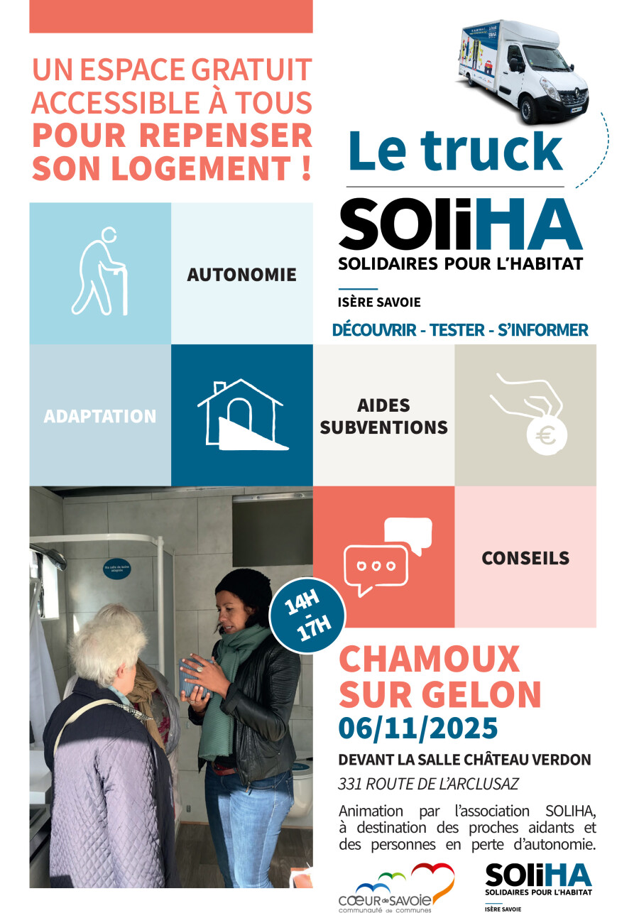 Le truck SOLIHA est un véhicule aménagé 100% adapté qui se déplace, à votre rencontre, pour vous présenter du mobilier et des aides techniques… qui vous simplifieront la vie au quotidien et amélioreront votre confort.