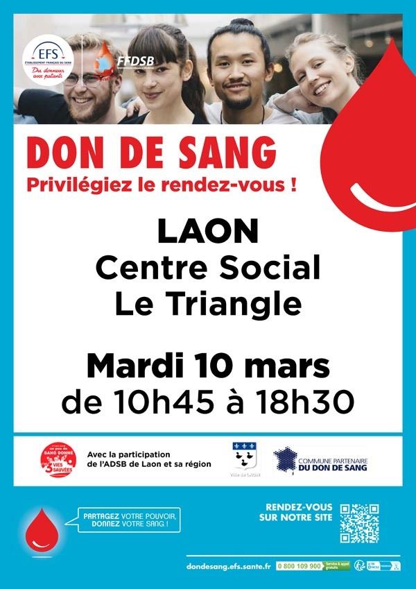 - le mardi 10 mars au Centre social le Triangle à Laon (1 rue Edouard Branly), de 10h45 à 18h30.