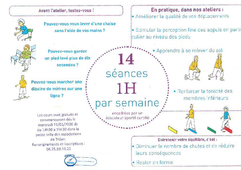 14 séances d'une heure par semaine, gratuites, encadrées par un éducateur sportif certifié, sont organisées les mercredis de 14h30 à 15h30 dans la salle des associations de la mairie.