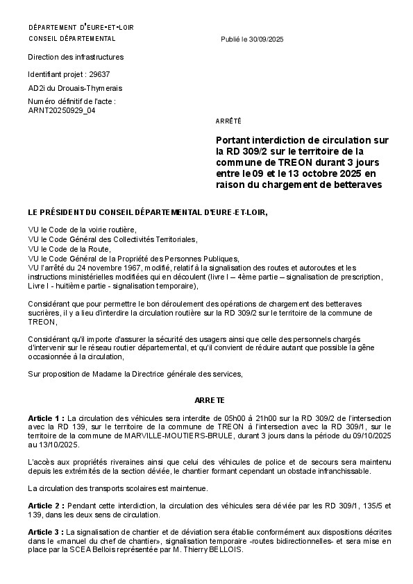 la route départementale 309/2 (route ralliant Tréon à Imbermais)