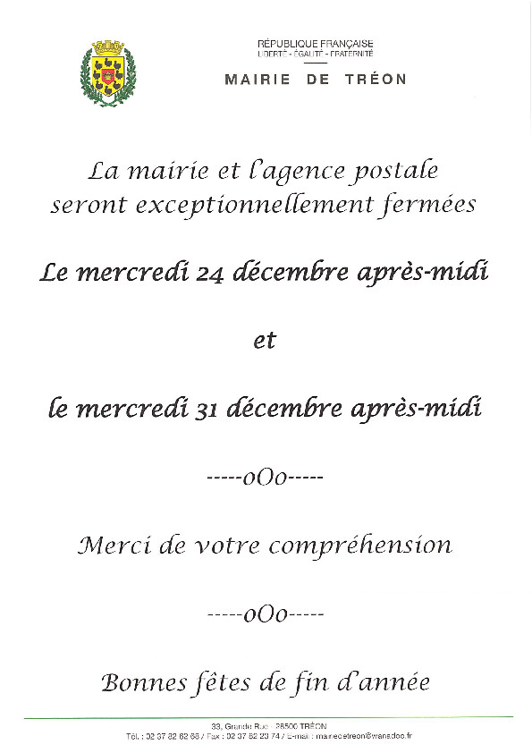 Monsieur le maire demande à ses administrés, dans la mesure du possible, de ne pas laisser les véhicules sur la voie publique pendant la période des fêtes.