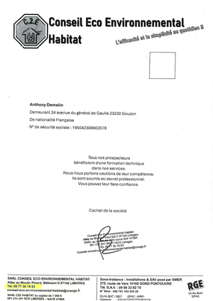 La société Conseil Eco Environnemental Habitat effectue actuellement sur la commune un démarchage pour de la rénovation énergétique.
