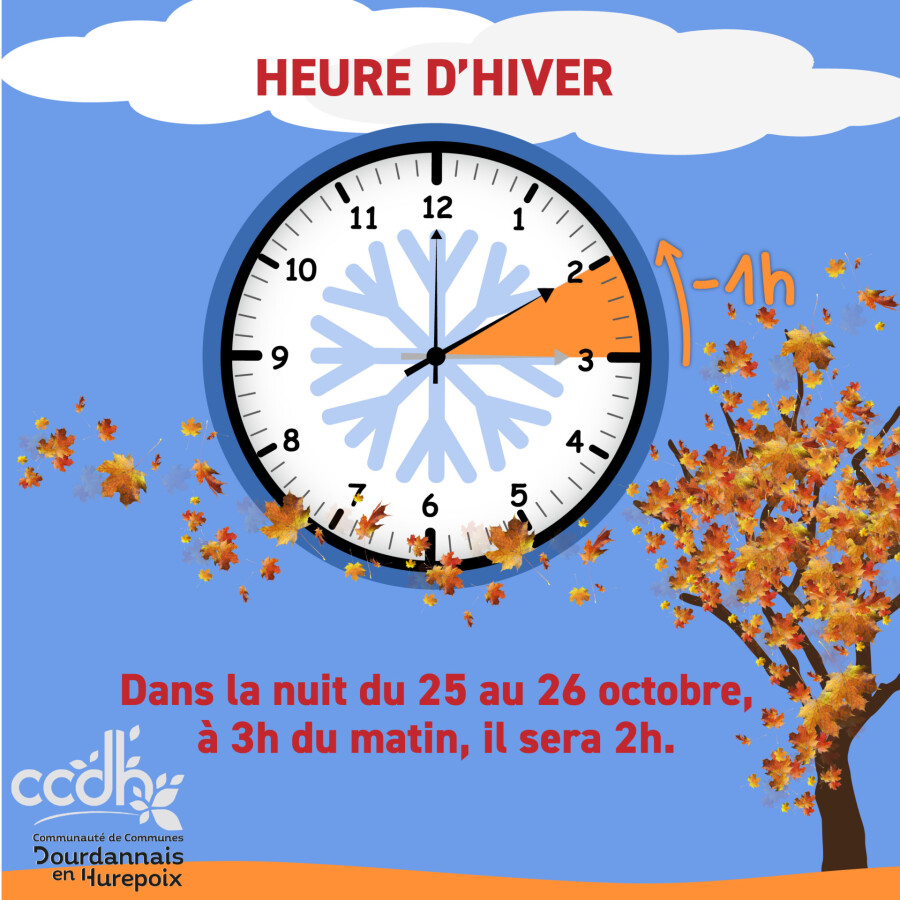 Le passage à l'heure d'hiver se déroulera dans la nuit du samedi 25 au dimanche 26 octobre 2025. Vous devez reculer votre montre d'une heure : à 3 heures du matin, il sera alors 2 heures.