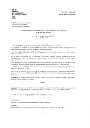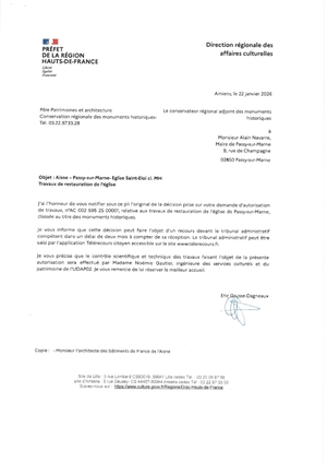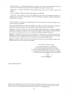 L’arrêté du Préfet de la région Hauts-de-France en date du 22 janvier 2026 (voir en copie) approuve la déclaration de travaux sous réserve de prescriptions.