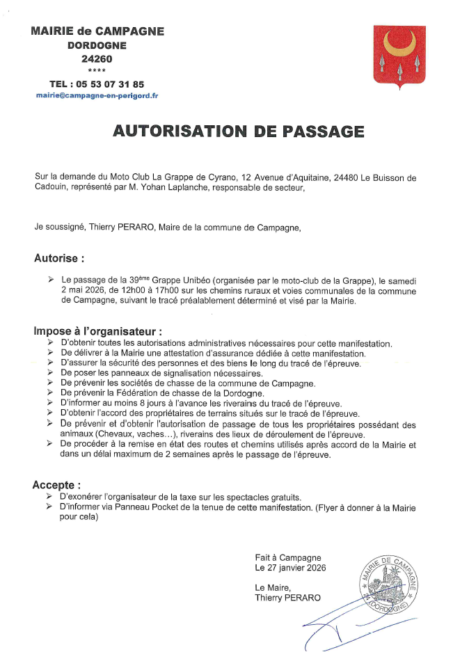 La Mairie vous informe du passage de la "Grappe Unibéo" sur le territoire communal le samedi 2 mai 2026.