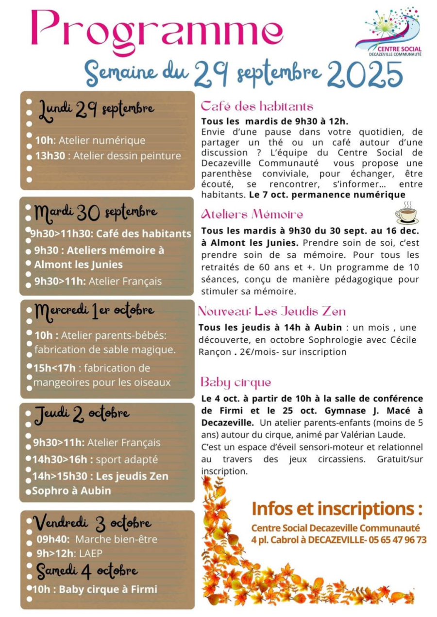 Inscriptions auprès de l'Office de Tourisme de Cransac
