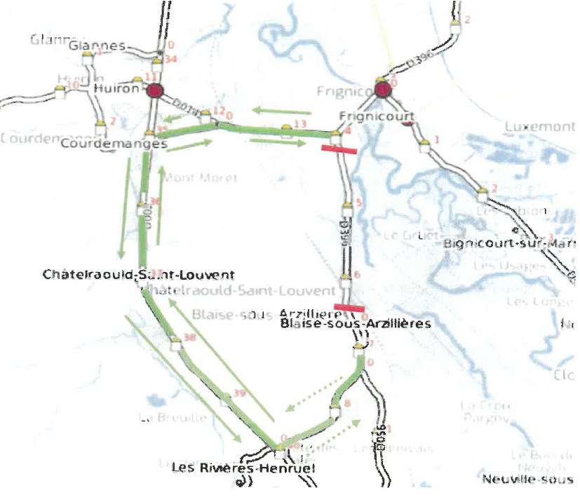 sur le territoire de Frignicourt jusqu'à l'entrée d'agglomération de la commune de Blaise-sous-Arzillières.