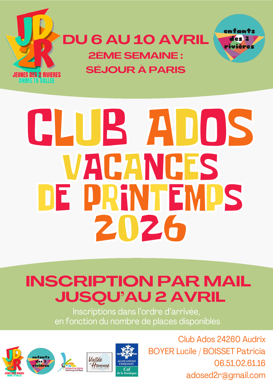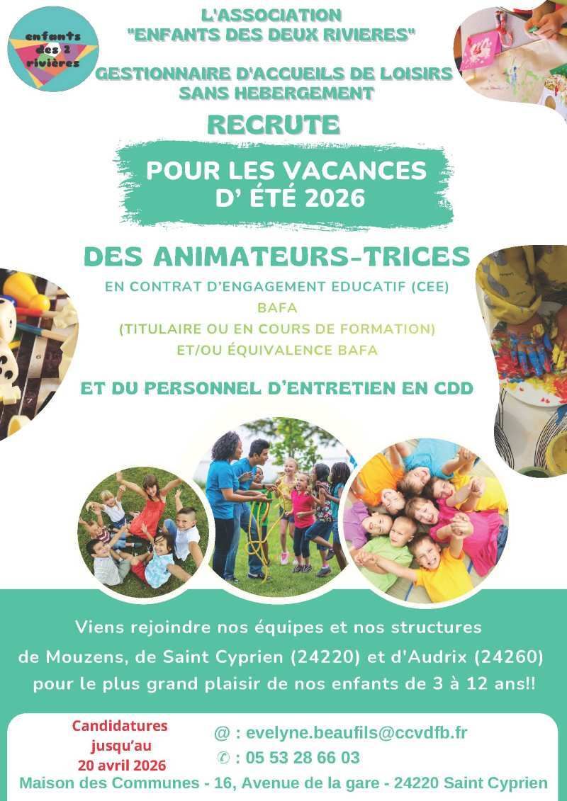 Sur réservation : 05 53 28 66 00 – julia.babylon@ccvdfb.fr