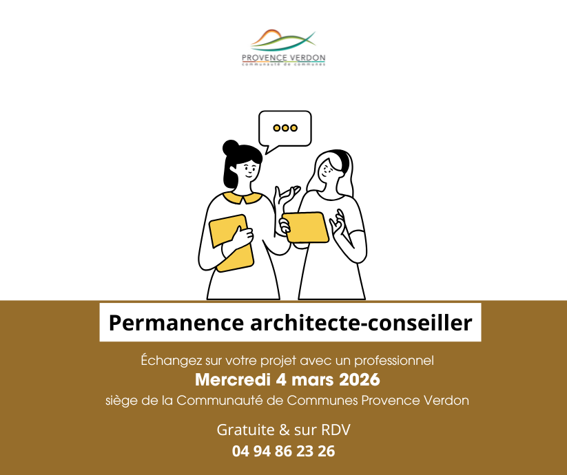 La Communauté de Communes Provence Verdon (CCPV) vous propose 👉️ une permanence avec un architecte-conseiller pour échanger sur votre projet
