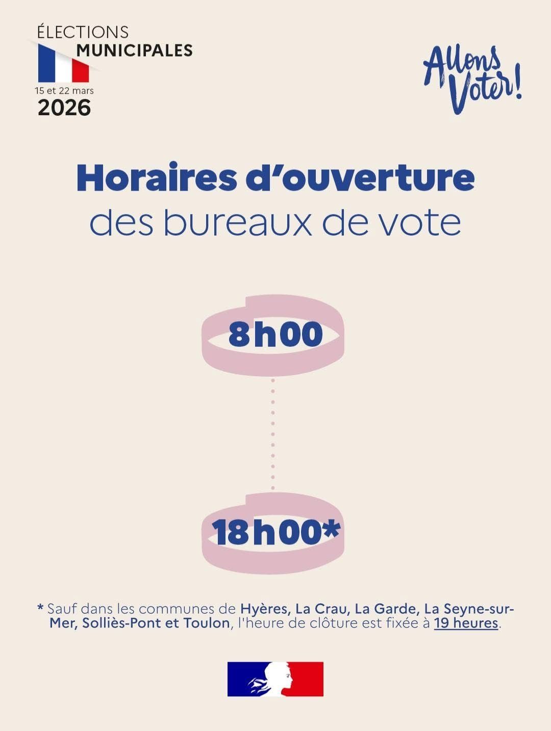 ⌚ Les bureaux de vote seront ouverts de 8h à 18h
