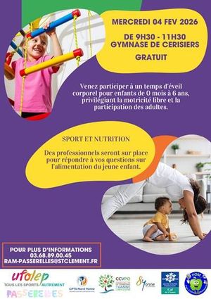 L’Association POM, l’UFOLEP et le RPE Passerelles vous invite à nous rejoindre le mercredi 4 février, de 9h30 à 11h30, au gymnase de Cerisiers, dans le cadre d’une matinée parents-enfants.