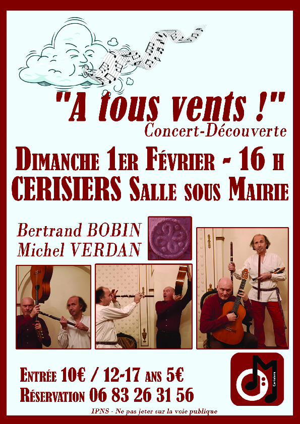 vous feront découvrir de nombreux instruments à vent, allant des flûtes à la cornemuse en passant par la bombarde, le bugle, l'accordéon ou la clarinette .
