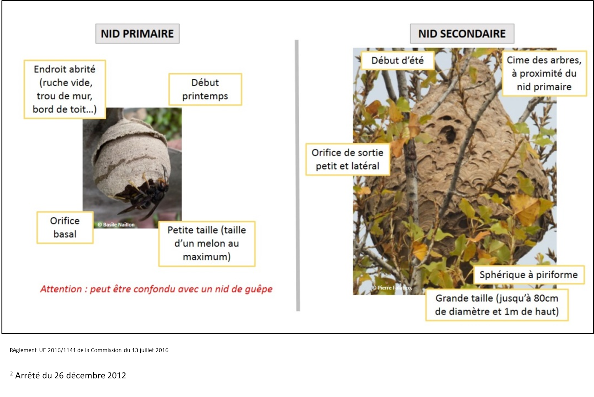 - Les nids secondaires : visibles dès le début de l’été, correspondant à une délocalisation de la colonie qui abandonne le nid primaire, trop petit.