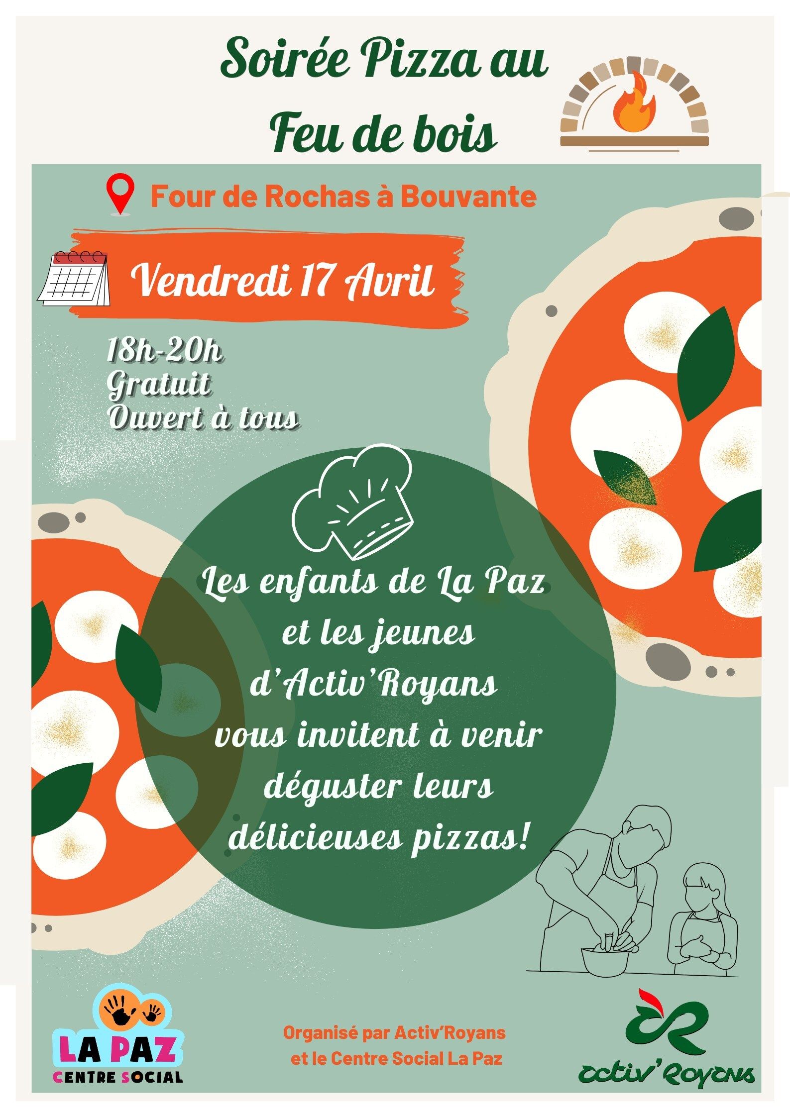 La pâte sera préparée par des enfants du centre social La Paz et par des jeunes d'Activ Royans. Les habitants et parents sont invités à 18h pour partager un morceau de pizza avec les jeunes.