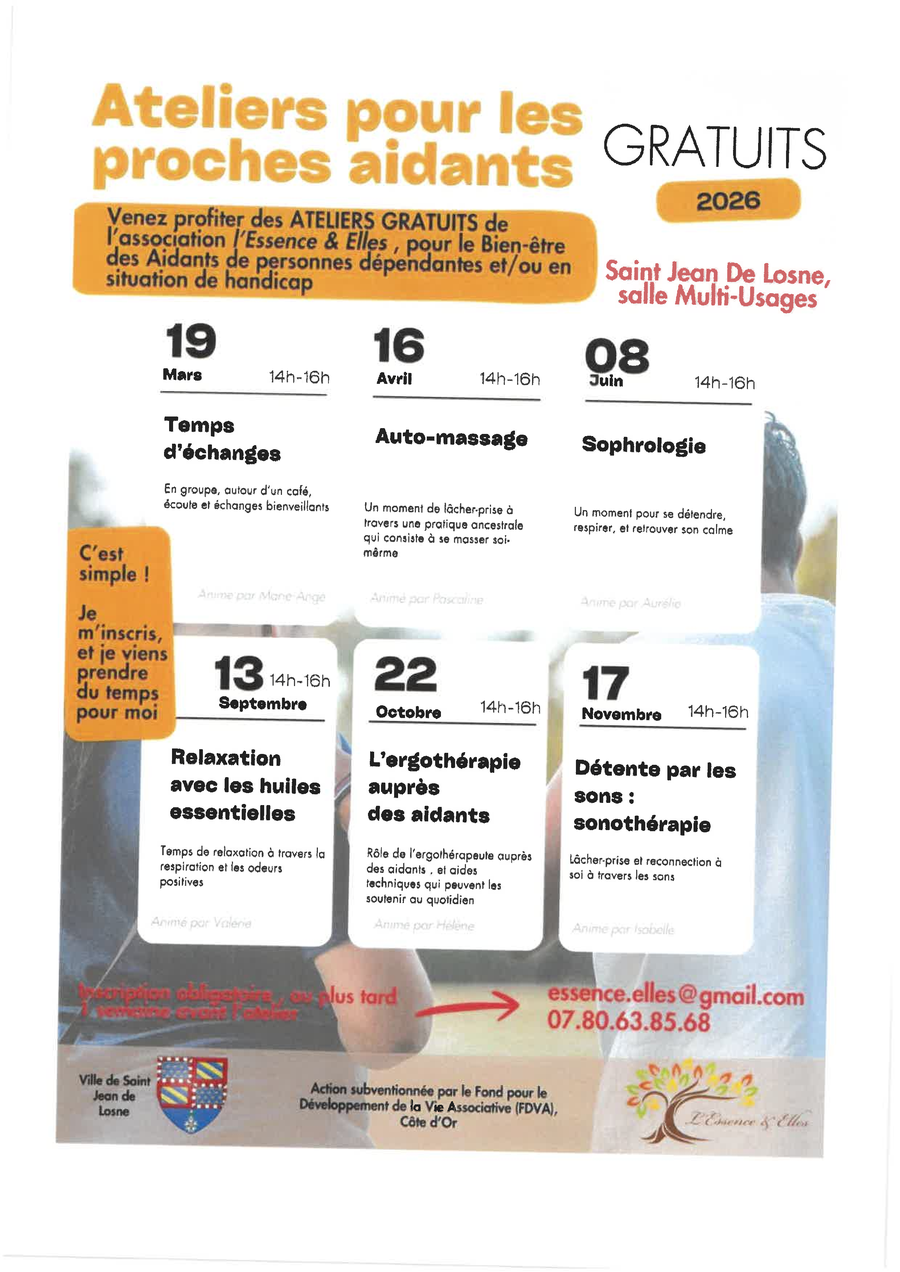 L’accès aux ateliers est gratuit, sur inscription à effectuer auprès de l’animatrice du Contrat Local de Santé