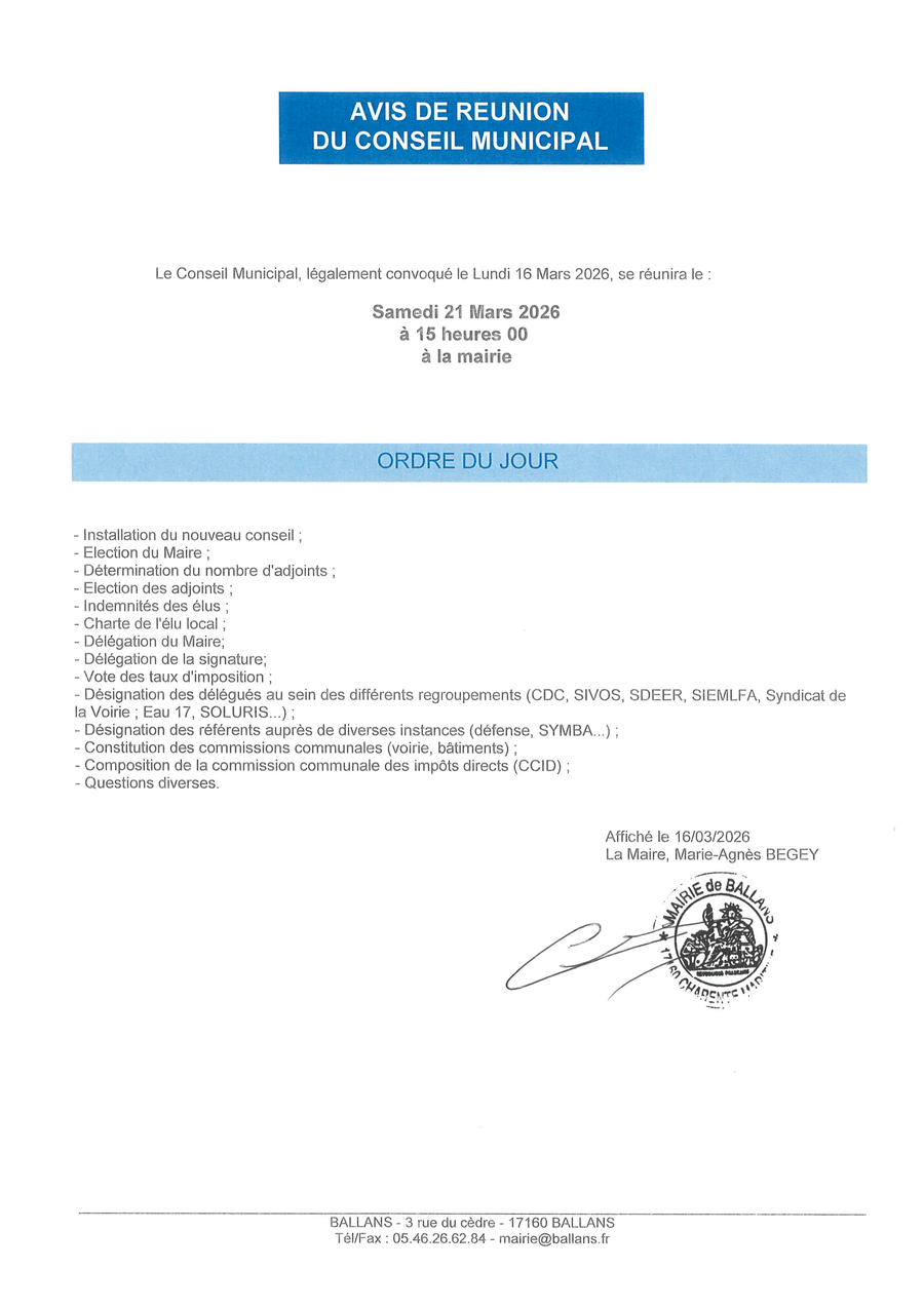 LA LISTE DE BALLANS EST ELUE