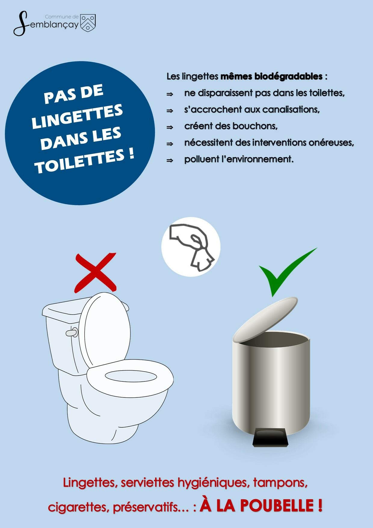 C'est simple : on ne jette rien dans les toilettes !