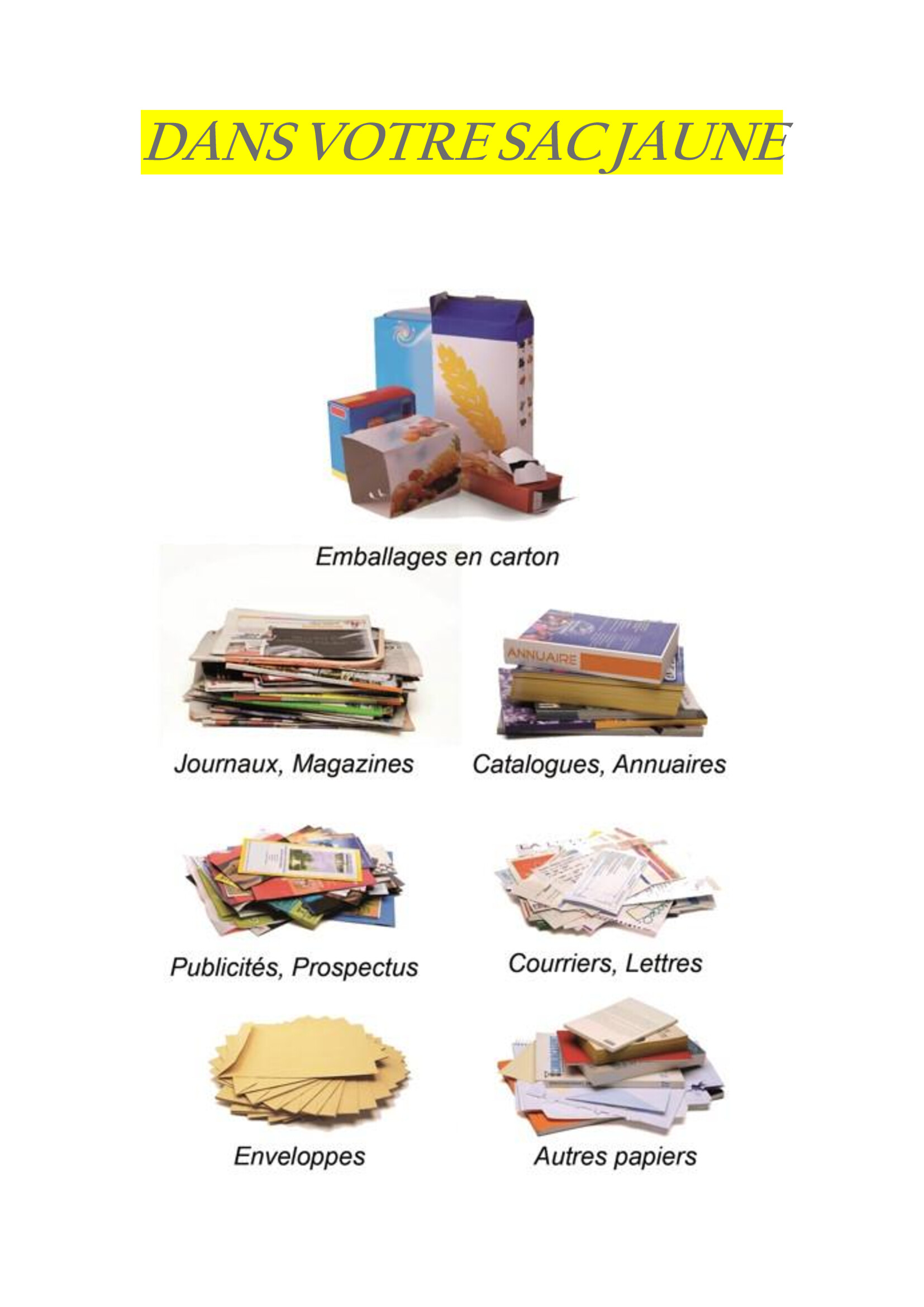 Dans vos sacs jaunes vous pouvez désormais mettre les papiers et cartons d’emballages :