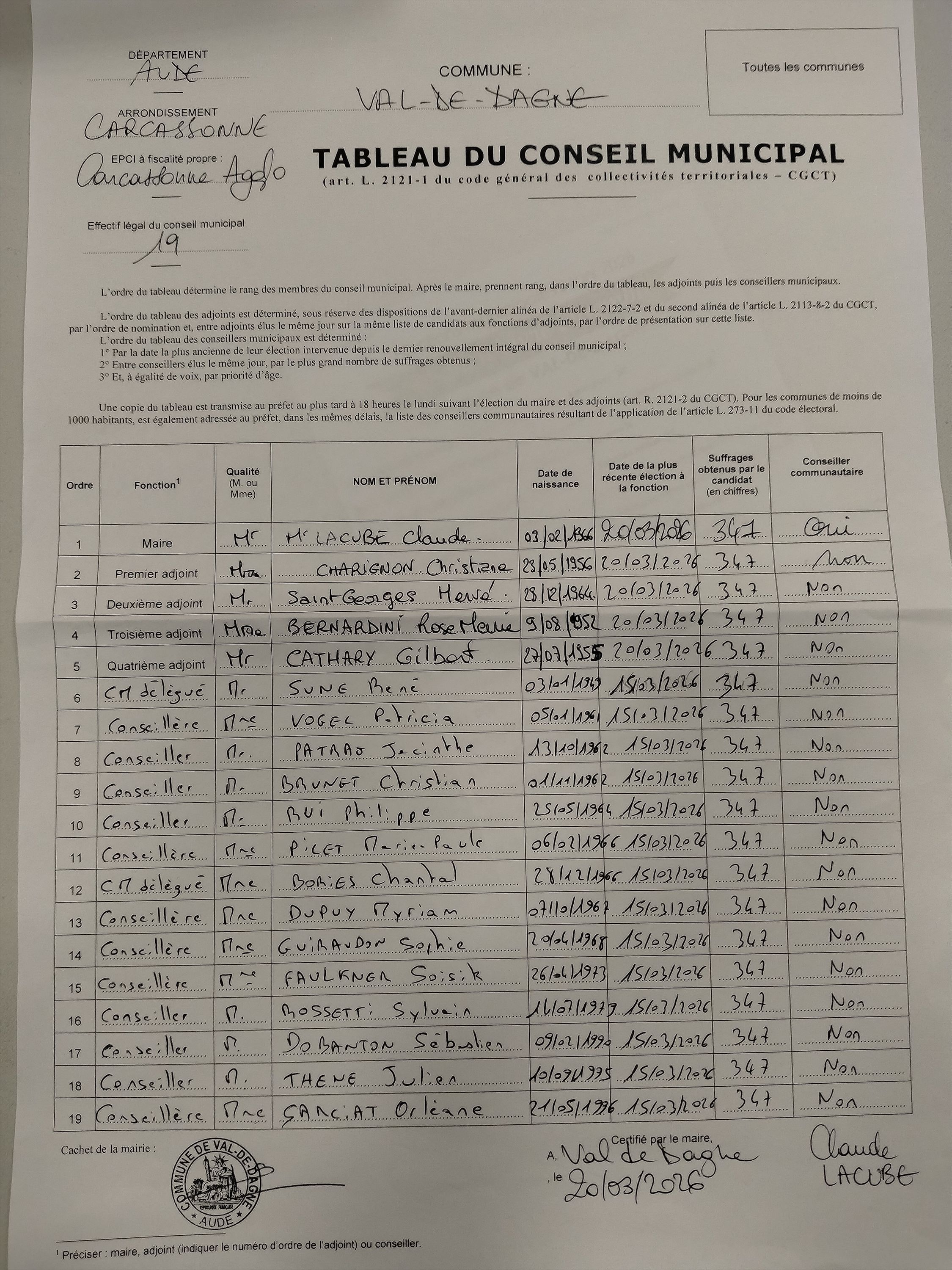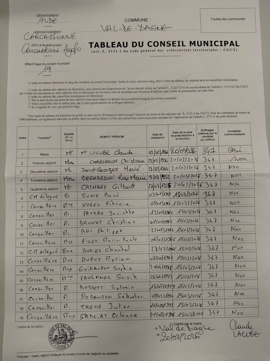 Tableaux du conseil municipal