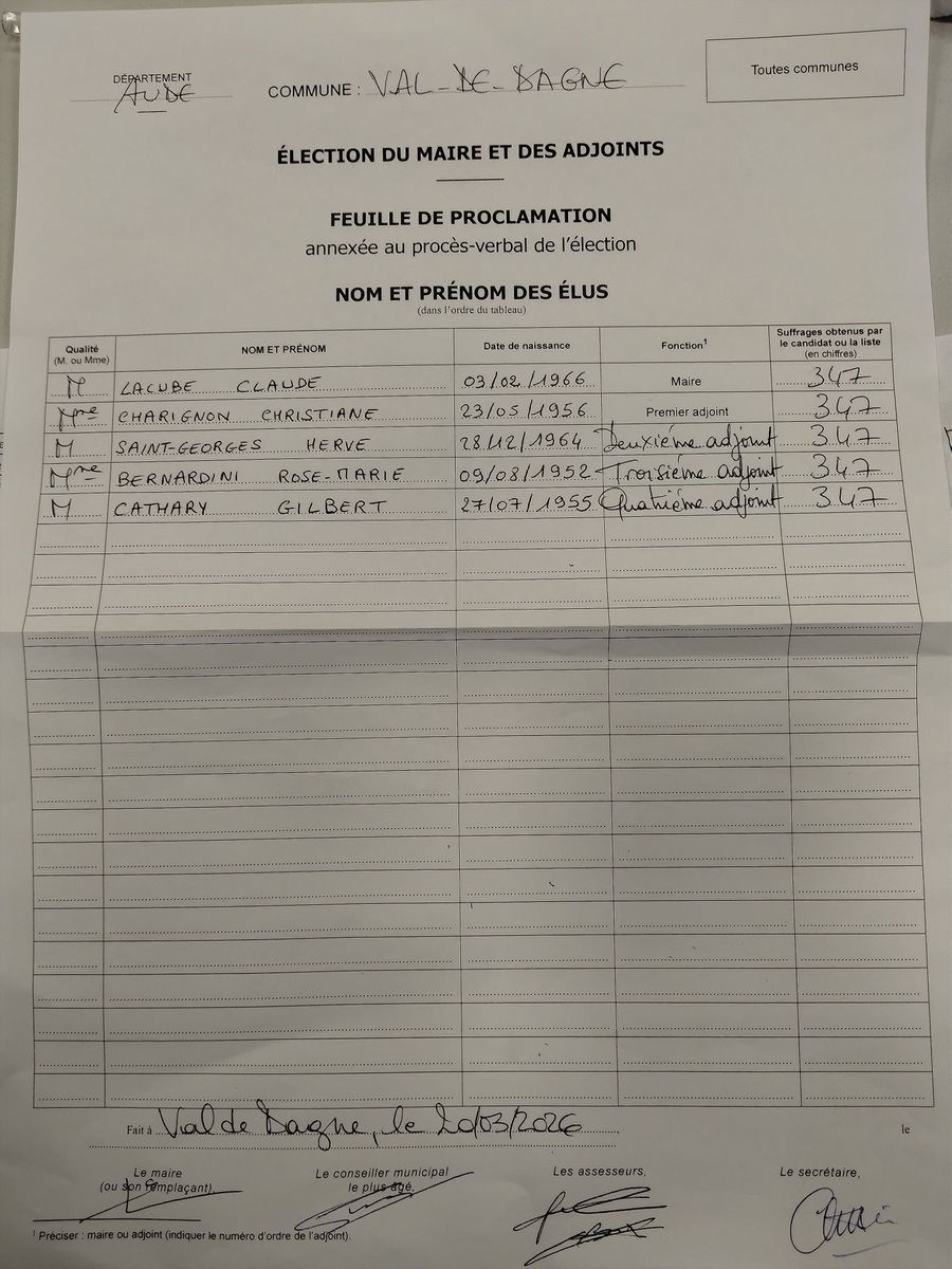 vos nouvelles coordonnées à mairievaldedagne11@orange.fr