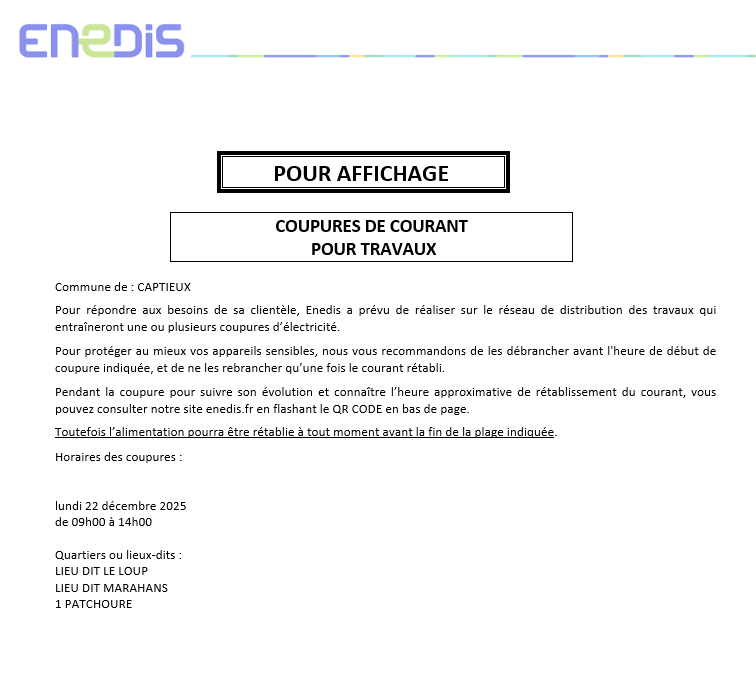 Nous vous informons qu’une interruption de la distribution d’eau potable Résidence les Bruyères II et route de Callen est prévue le Mardi 9 Décembre 2025, de 09h00 à 12h00.