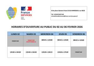 L'accueil France services sera exceptionnellement fermé au public mardi 03 février matin
