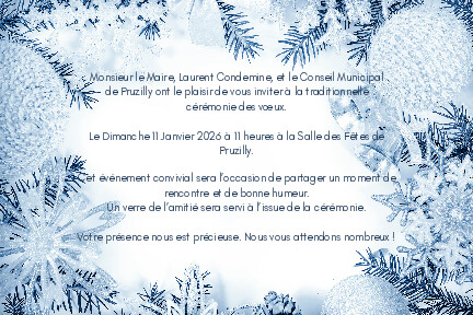 Le maire, Laurent Condemine, et le Conseil municipal de Pruzilly ont le plaisir de vous inviter Ă la traditionnelle cĂ©rĂ©monie des vĆux