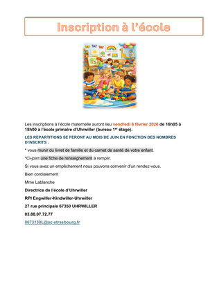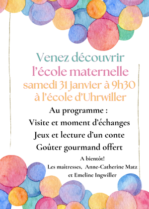 Je vous donne rendez-vous samedi 31 janvier à partir de 9h30 à l’école maternelle d’Uhrwiller, pour une visite et un moment de dialogue.