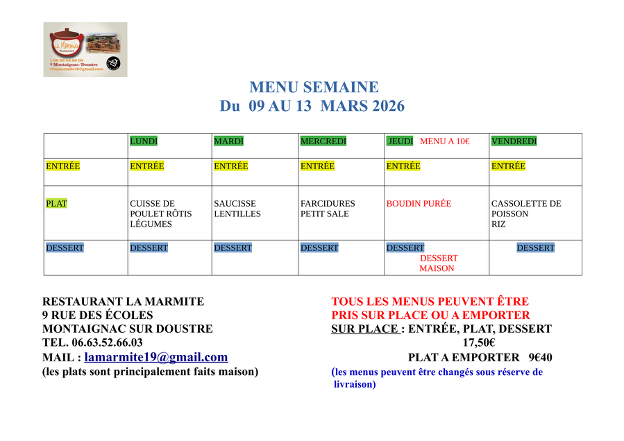 Voici les menus de la semaine.