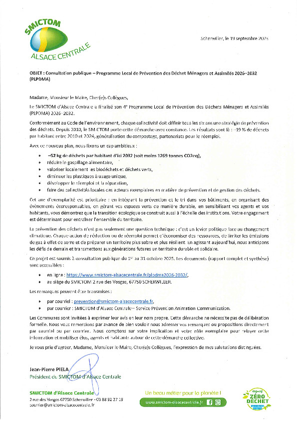 Accès direct à la consultation : www.smictom-alsacecentrale.fr/plpdma2026-2032