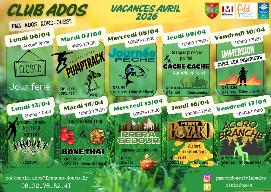 Planning vacances d'avril 2026