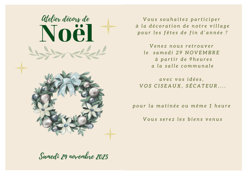 N'oubliez pas de vous inscrire si vous souhaitez participer au concours des décorations de Noel de la commune.