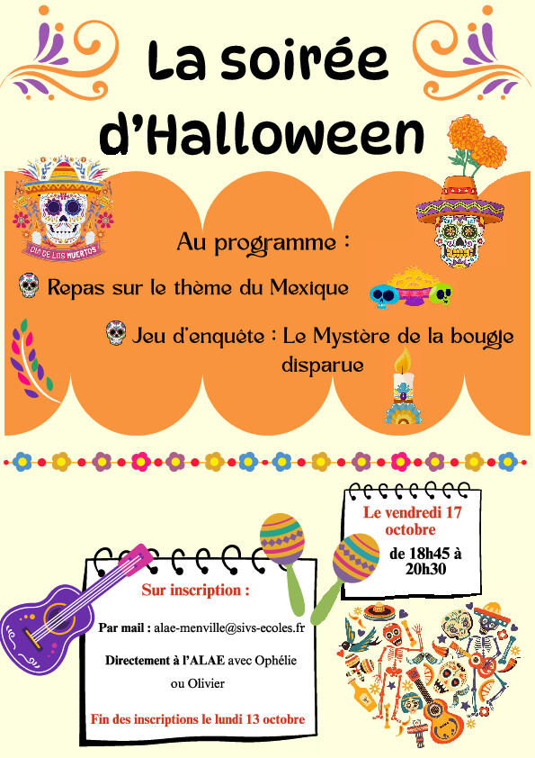 Dans le cadre des activités de l’ALAE de Menville, une journée spéciale consacrée à Halloween sera organisée le vendredi 17 octobre. Les enfants participeront à diverses animations tout au long de l’après-midi, avant de clôturer la journée par une soirée festive.