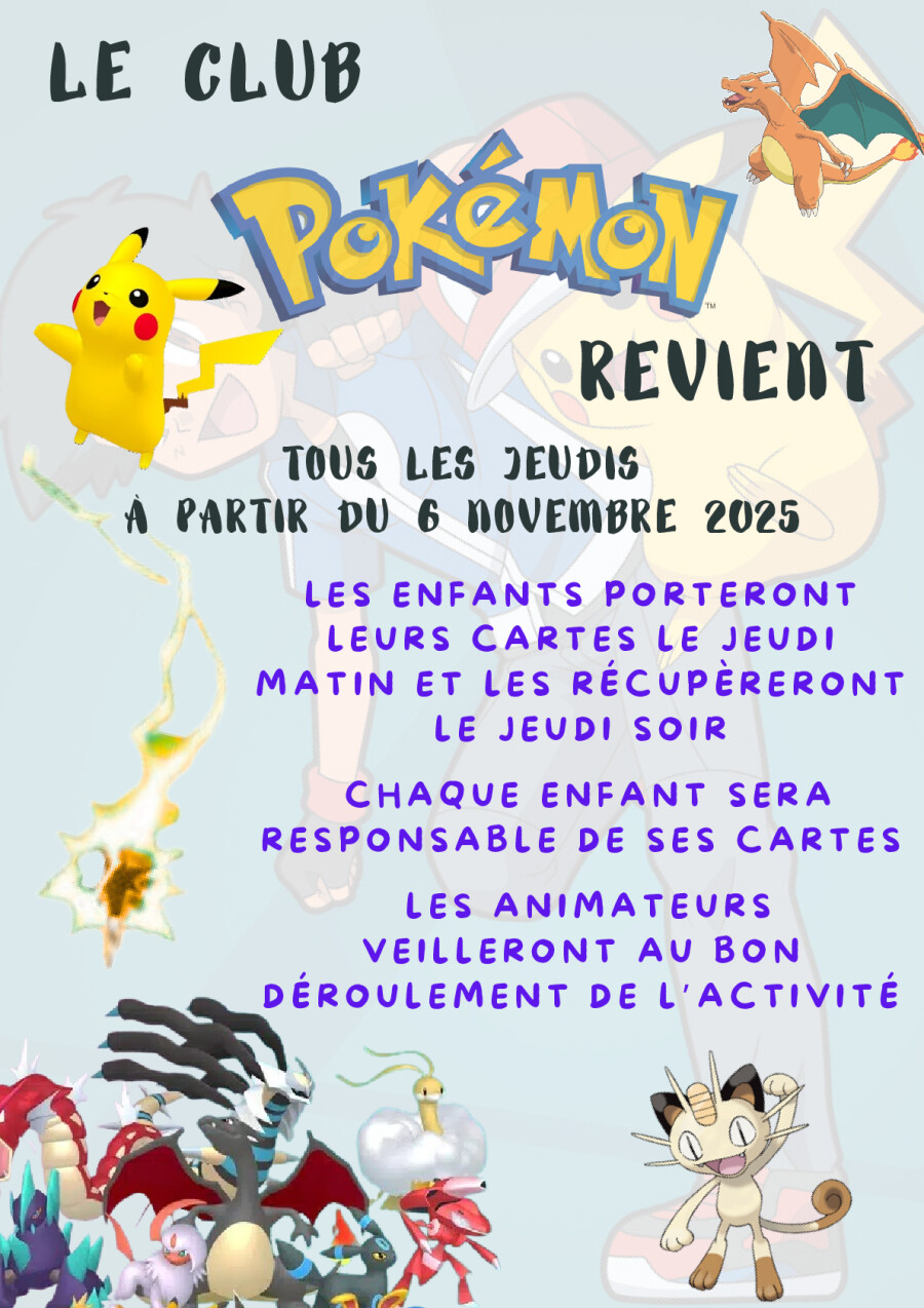Tous les jeudis, à partir du 6novembre 2025, les pokémons seront au rendez-vous.