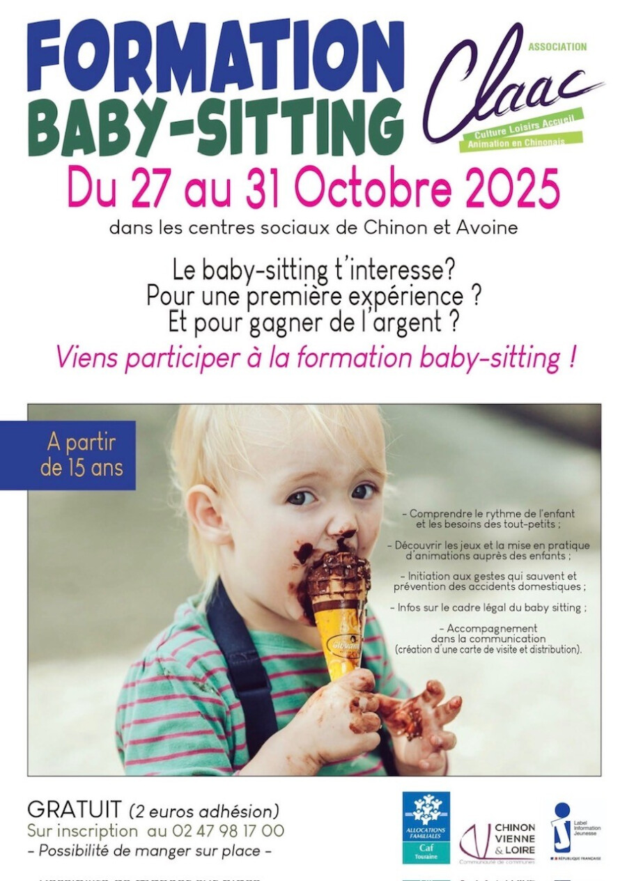 L'association CLAAC propose une formation baby-sitting du 27 au 31 octobre dans les centres de Chinon et d'Avoine.