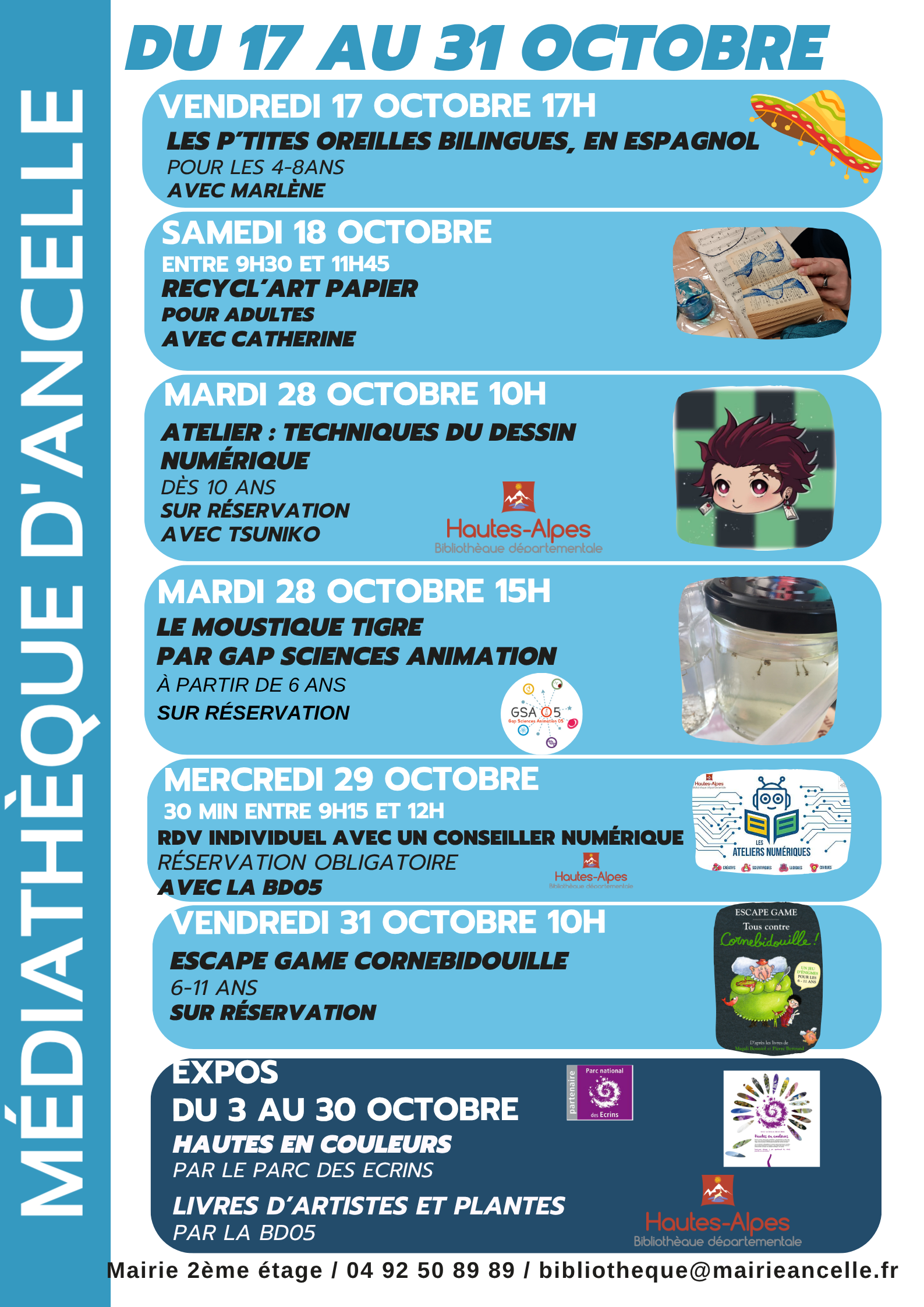 Pendant les vacances de la toussaint, direction la médiathèque et son lot d'animations : des ateliers, des temps de lecture, de la science, des jeux et une expo !