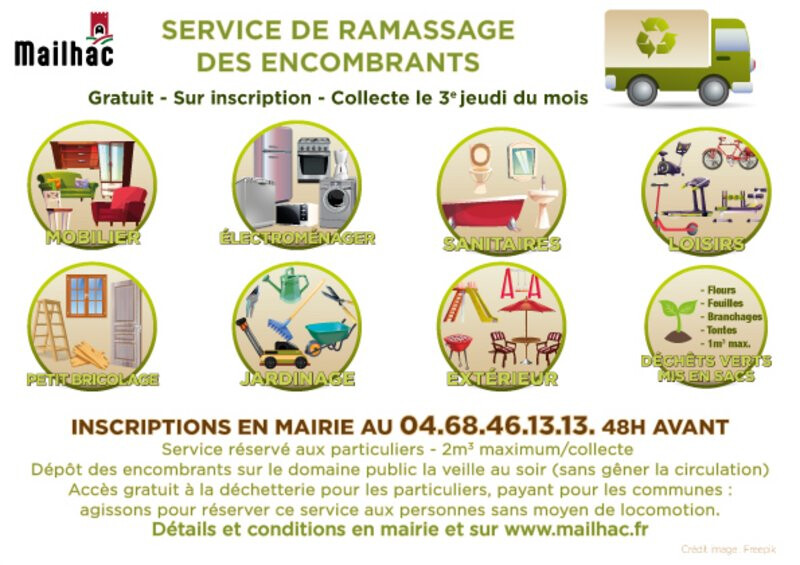 👉 vous inscrire auprès de la mairie (04 68 46 13 13 ou mail mairie@mailhac.fr), au plus tard 48h avant le jour de passage,