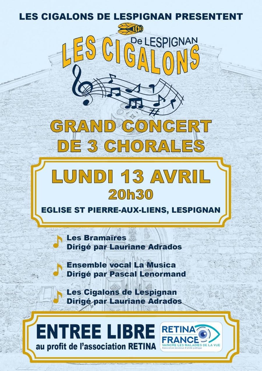 Les Cigalons de Lespignan vous donnent rendez-vous pour une belle soirée musicale placée sous le signe du partage et de la solidarité 💙