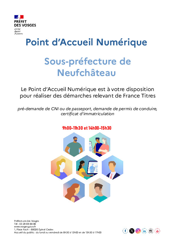 - Le 4e lundi du mois de 10h à midi au CCAS de Neufchâteau SUR RDV