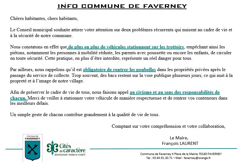 Il nous a été signalé qu’un démarcheur se présentant au nom de l’opérateur FREE se rend actuellement au domicile des particuliers, en affirmant être mandaté par la commune de Faverney.