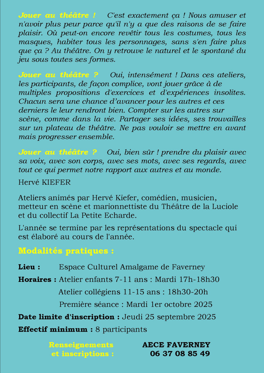 Samedi 18 octobre de 9h à 12h, deux ateliers sont proposés :