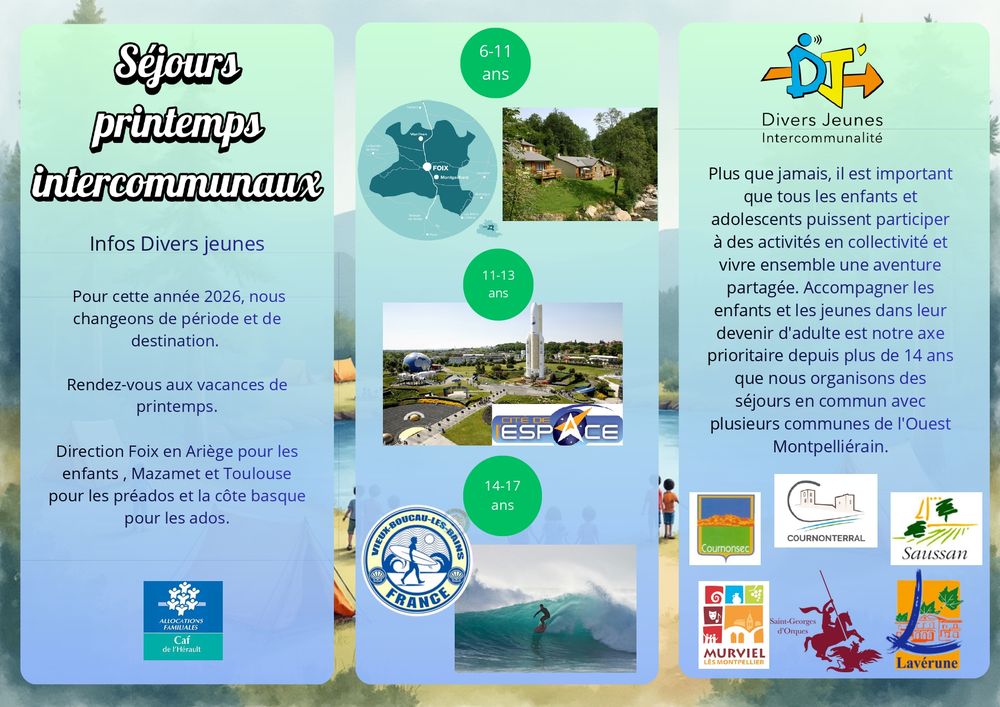 La commune propose depuis plus de 15 ans des séjours été et hiver, organisés dans le cadre d'une intercommunalité avec Lavérune, Saint Georges d'Orques, Cournonsec, Cournonterral et Saussan.
