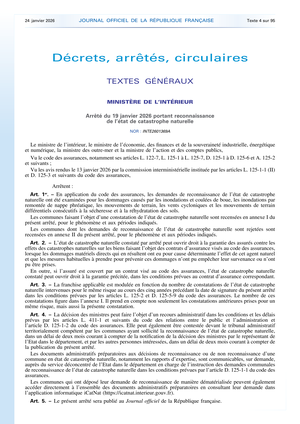 Vous avez 30 jours pour adresser à votre compagnie d'assurance l'arrêté officiel, indispensable pour finaliser votre dossier de gestion de sinistre.
