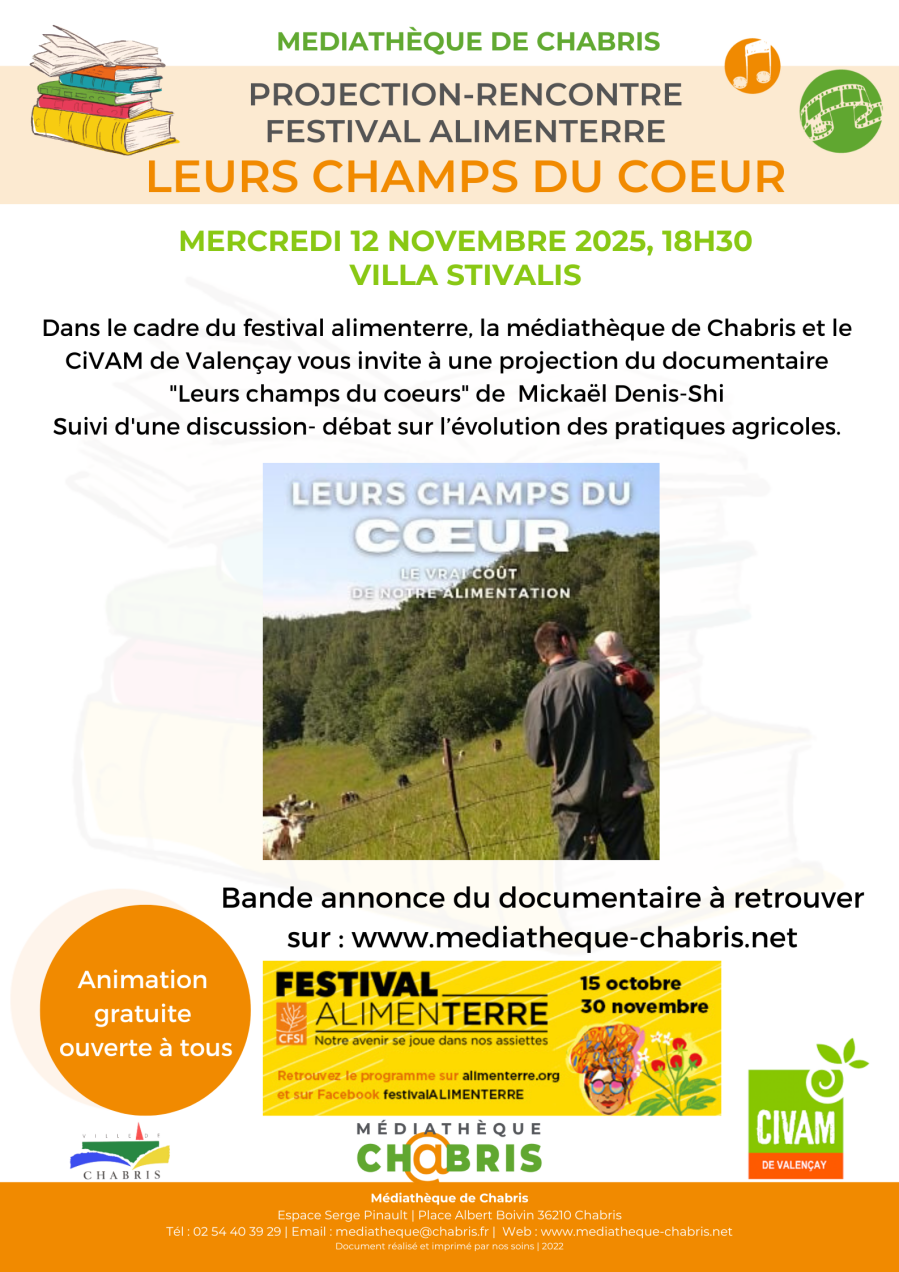 ATTENTION : uniquement sur réservation, les modalités d'inscription seront précisées ultérieurement (n'hésitez pas à contacter la Médiathèque au 02-54-40-39-29)