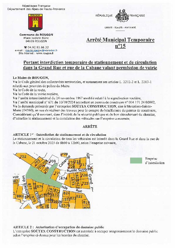 ℹ️ Une emprise de chantier autour de la mairie sera occupée par l’entreprise SOUTEX CONSTRUCTION .