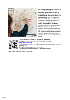 Dans le cadre d'une thèse en Psychologie à l'Université Rennes 2, des étudiants réalisent, du 23 au 26 mars, une étude sur les moyens de déplacement auprès des habitants volontaires de la CCPL.