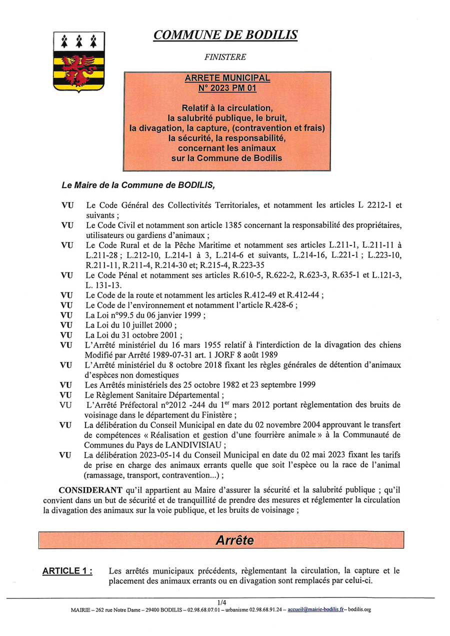 les cas de divagation, gène ou attaque, sont à signaler au moment des faits par téléphone au 0298680701 aux horaires d'ouverture de la mairie ainsi que par des déclarations écrites accompagnées de photographies à transmettre à l'adresse accueil@mairie-bodilis.fr