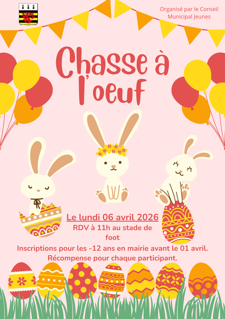 La traditionnelle chasse à l'oeuf du Conseil Municipal Jeunes revient le lundi 6 avril à 11h.