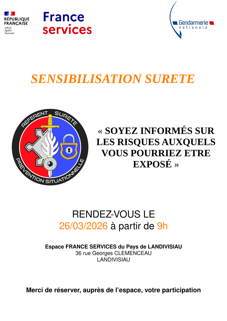 Le référent sureté de la brigade de gendarmerie de Landivisiau assurera un atelier à destination des habitants :